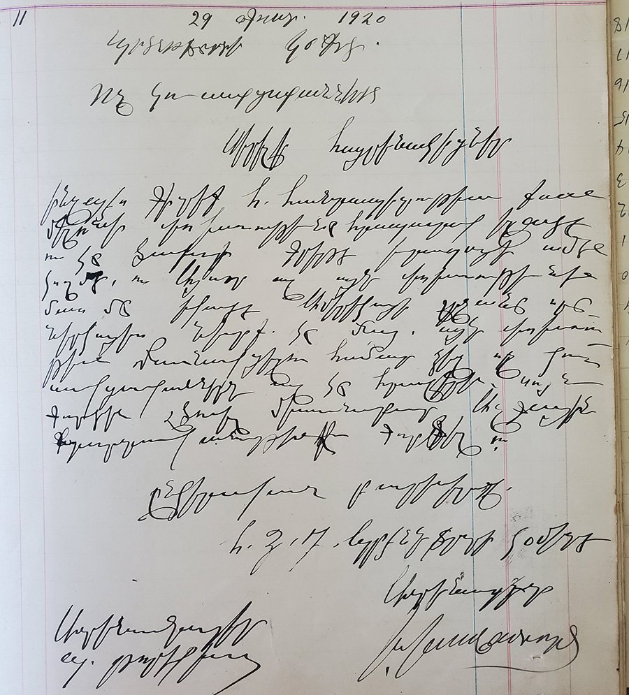 Ինչպէս գիտէք, Հայաստանի Հանրապետութեան ներքին (ազատութեան) փոխառութեան առթիւ Եւրոպայի ամէն կողմը յանձնախումբեր կազմուած են՝ փոխառութիւնը յաջողութեամբ պսակելու։ Տեղւոյս գաղութը ևս մասնակից ընելու համար կը հրաւիրենք ձեզ եւս որ հաճիք գալ Խրիմեան գրադարանը միասին խորհրդակցելու և շուտափոյթ կարգադրութիւն մը ընել միասնաբար գաղութիս մէջ յաջողութեամբ պսակելու Հայաստանի Հանրապետութեան փոխառութիւնը։
